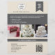 Showcase your cake studio with elegance and style. This professionally designed flyer is perfect for high-end bakeries, cake artists, and boutique dessert studios. Personalise it with your own three images to feature your best custom cakes, add your business name, contact details, and a tagline that reflects your brand. Includes space for a QR code so clients can easily book an appointment, access your website, order form, or social media. Ideal for wedding cake designers, premium celebration cakes, and modern cake businesses that value quality, design, and detail.