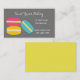 A cute vintage retro style business card suitable for a bakery or cake making business. This whimsical design shows delicious looking French macaron or macaroon illustration against a modern background. The background colour can be changed to suit your taste. This business card is fully customisable to include your own personal details.