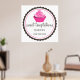 © 2013 Socialite Designs. Elegant poster design incorporating a cupcake with pink icing and polka-dot cup. Your text goes into a circular banner with a scalloped edge. If you require HELP with customising, please do not hesitate to contact Socialite Designs.