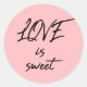 Simple, modern design for your bakery packaging ''love is sweet'' stickers in soft pink.