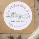 This elegant round sticker features a watercolor whisk nestled in soft lavender and white blooms, a delicate and heartfelt label for any handmade baked good. Add your product name and seal up cookies, pastries, or confections with charm.