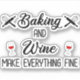 Baking And Wine Make Everything Fine. This funny quote baking accessory is a great gift for a man or woman who loves to bake in the kitchen and is a wine lover. Also perfect for a baker or a bakery worker. If you're a home baker, love the culinary arts, and love to prepare delicious bread, cookies, muffins, cakes or cupcakes in the oven, then this humourous design is for you.