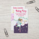 Updated kitchen fairy business card for baker, bakery, baking, or pastry chef. Cute fairy wears a dress and apron, ballerina shoes, and has a magic whisk for magical baking action. Cupcake, cookie, and cake on the bottom.