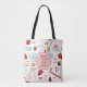 Baking Cheaper Than Therapy Funny Kitchen Pink Red Tote Bags features a colourful kitchen themed pattern with the editable text "Baking is cheaper than therapy" in modern script typography. Perfect gift for those who enjoy baking, cooking and being in the kitchen for Christmas, birthday, Mother's Day. Designed by ©Evco Studio www.zazzle.com/store/evcostudio