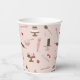 A cute pink and brown themed baking and cooking utensils pattern. Bakery cooking themed illustrations include a rolling pin, whisk, piping bag, desserts, spatulas, spoons and more.