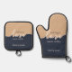 Baking is Love Made Edible. NAVY & TAN. Clean Modern Script design. Her home baking is frame-worthy. Sign her masterpiece with a flourish with this understated classy oven mitt & pot holder set. You can make them a His & Hers set with different names on each piece!