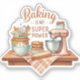 Celebrate your inner baking hero with this playful sticker featuring the phrase “Baking Is My Super Power.” Surrounded by delightful illustrations of cookies, a mixer, rolling pin, whisk, and other essential baking tools, this design is perfect for passionate bakers, pastry lovers, and kitchen creatives. Whether you bake for fun, family, or profession, this cheerful design showcases your culinary skills with charm and confidence.