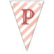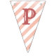 Charming bunting flags featuring soft pastel pink watercolor stripes with a fun, playful feel. Includes customizable Happy Birthday letter templates, allowing the banner to be personalized and reused for different celebrations and occasions.