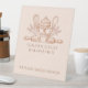 Baking utensils baker bakery pedestal sign featuring a detailed line art illustration of classic baking tools, wheat accents, and a cake stand in warm copper tones on a soft blush background. Designed for countertop and table display, this sign creates a refined artisan bakery look that feels both welcoming and elevated. A beautiful addition for farmers market booths, bakery counters, dessert tables, and small baking businesses, helping present your setup in a cohesive and polished way that pairs seamlessly with matching bakery cards, labels, and packaging.