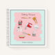 Cute pink and blue personalised Baking recipe book with watercolor illustration of cake mixer and baking tools.