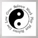 Balance - Work Play Plan Live Love Grow - white poster with black script lettering and yin yang symbol.