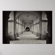 Black and white photograph of the arched hallways at Balboa Park in San Diego, California.