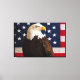 Bald Eagle 4th Of July poster Comes with a beautiful Bald Eagle head and looking with a American flag behind him .this is a beautiful photo on this Wrapped Canvas 14