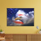 Bald Eagle 4th Of July poster Comes with a beautiful Bald Eagle head in the sky with a American flag behind him in the clouds .this is a beautiful photo on this Wrapped Canvas 10