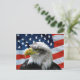 Patriotic postcard has close up photo of Bald Eagle in front of the American Flag