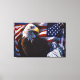 Bald Eagle an Statue of Liberty an American flag Canvas Print