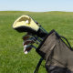This eagle design golf club head cover is an accessory that you slide over the head of a golf club for protection against knocks whilst sitting in your golf bag. Made out of polyester, cotton, and marine vinyl with a choice of different piping colours. You can customise this golf club head cover with any text. Should you require any help with customising then contact us through the message link on this page. Bald eagle design golf club head cover.