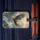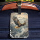 Luggage tag featuring a stunning painting of a bald eagle flying over majestic mountains. Durable and stylish, this tag adds a touch of natural beauty to your travel gear, making it easy to identify your luggage with elegance.