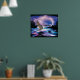 Brighten Your Home with this Unique "One Of A Kind" Bald Eagle Poster. It Features a Painting of a Bald Eagle Flying Over a Blue, Pink and Purple Moonlit River During a Lightning Storm!