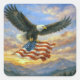 Bald Eagle Flying With American Flag Square Sticker