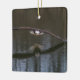 at christmass as a hanging decration for the chritmass tree.. its white porcline or cramic but very well made with added photo on one side.. also has a lovley red bag to keep it in.. execlent printed text in bold and black stands out well aganst the blue background of the photo.