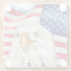 Bald Eagle in front of American Flag Patriotic Art Glass Coaster