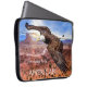 Laptop sleeve featuring an image of a bald eagle flying over Monument Valley at sunrise, with your custom texts (optional).