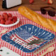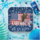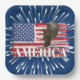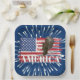 Landing bald eagle with an American flag, fireworks, and AMERICA text for a 4th of July party.