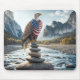 Bald Eagle On Cairn With American Flag Mouse Mat