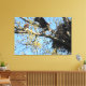 Bald eagle nesting pair, at nest. Female eagle carries in fish, while male eagle stands watch over the nest. Action filled nature photo is ideal for home, office lobby and conversation starter.