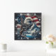 Bald Eagle Perched on Branch by Mountains and Flag Square Wall Clock