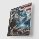 Bald Eagle Perched With American Flag Backdrop Square Wall Clock