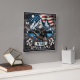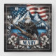 Bald Eagle Perched With American Flag Background Square Wall Clock