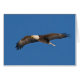 A magnificent bald eagle, photographed as it soars in a vibrant blue sky.