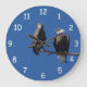 A pair Bald Eagles perched in a tree majestically survey their domain. An adult and a juvenile Bald Eagle are perched in a dead snag with the juvenile in the centre of the clock and the adult on the right. They are set against a beautiful deep blue sky with white numbers. Copyright © 2013 Fred Ziegler