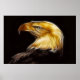 Featuring a breath taking view of a Bald Eagles with power glowing out of it and a black back ground.this is a beautiful photo on this poster