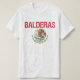 A t-shirt featuring a distressed Mexican eagle featuring the last name Balderas.
