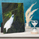 Bali Myna (Leucopsar rothschildi), or Bali Starling, cute white bird drinking water, painting effect