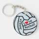Netball ball theme key ring with custom colour and name. Personalised Netball gift ideas for players and fans.