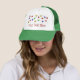Personalise with your own text! A pattern of red, blue, green, and gold Christmas tree ornaments -- the glass ball kind, with gold hooks and reflections -- rolls across this design. Sure it's a trucker hat, but it's festive holiday gift item!