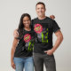 I give wanted to give this a 4 instead of a 5 because these Basic DARK T0shirts run unexpectedly SLIM or Narrow. Which is great if you do not have a potbelly, but I have a paunch. It isn't the shirt's fault that I've got a beer belly. The design and shirt itself is a quality cotton shirt. The color is more of a deep purple, but still a very pretty color. The Basic DARK T-shirts run a bit SLIMMER than the Basic Ts. The neck is a fraction narrower (or seems to be narrower) also. I'm a paunchy middle-aged woman and my neck is 12 inches (31cm) thick and the neckline fell about the same as in the photo of the man, and I had the desire to tug it a bit. So if you're a thick necked man or like loose shirts, be aware these are slimmer shirts. Once I get rid of my lockdown paunch it'll look great. The shirt washed well in cold water with no apparent bleeding. We don't have a dryer, so it hung dry. Did not shrink. Love the colors and the design. The design looks smaller on my shirt than it does on the model on-line. But still, it looks good on the shirt. The printing looks as it does on the model, just the size seems fractionally smaller. Washed garment in cold water, hung dry and design appeared unaffected.