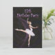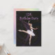 A beautiful ballerina dancing on a birthday party invitation. The ballerina is wearing a white tutu, and is en point.
