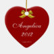 Beautiful dancing ballerina holding a nutcracker personalised double sided ceramic Christmas ornament! The front of this lovely ornament features a holiday scene of a ballerina dancing in a ballroom and holding up a nutcracker. Reminiscent of the Nutcracker ballet. There are lovely decorated holiday trees just of to the sides, a pretty wreath, and two glowing candle sticks. The back is a lovely deep holiday red colour with a golden holiday bow on top and is ready for you to personalise with a special name in the easy to use template area right on this page. The lettering is an elegant white style. Right below that you can enter in the current year! To edit the font style, colour, or size simply click on customise and those options will also be made available to you! A most precious addition to any ornament collection! Classic holiday colours in shades of golds and reds! This is a lovely gift for friends, family or someone who loves the nutcracker or ballet. Available in different sizes and shapes, and other languages. For other designs of holiday ballerina greeting cards and gifts please visit our shop!