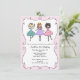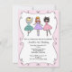 A trio of hand sketched ballerina's dance and twirl. The whimsical border is hand drawn with a subtle pink watercolor wash. Personalise this invitation for your daughter's ballet party. This invitation can also be personalised for a recital.