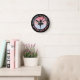 Great quality clock and very well made. Just what I was looking for to finish my hall off. Looked in loads of other websites and eventually found exactly what I was looking for at Zazzle. Designe and colour is perfect. I just love it. Bought the medium size and fits well for where I was placing it.