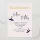 An elegant ballerina in a blue tutu is the main feature on this girls Ballerina Birthday party invitation.