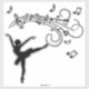Simple black silhouette of a ballet dancer with fancy music bar and notes