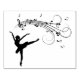 Simple black silhouette of a ballet dancer with fancy music bar and notes