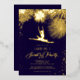 Ballet dancer, fireworks and stars. Elegant font combo. Night sky blue and gold. Cute and fancy Sweet Sixteen invitation.
