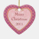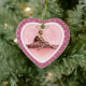 A beautiful Christmas ballerina ceramic heart ornament. The front of the ornament features a lovely ballerina on a rose and pink coloured background of hearts and frosty snow. The back of the ornament reads 'Merry Christmas' and the year, and is in template form if you would like to edit or change the wording. A wonderful keepsake for any friend or family member who was or is a ballerina, for a young girl who is taken ballet classes, or a gift for a ballet instructor. Please visit our store for more ballerina themed and style products, such as greeting cards, stamps, mugs, and much more!